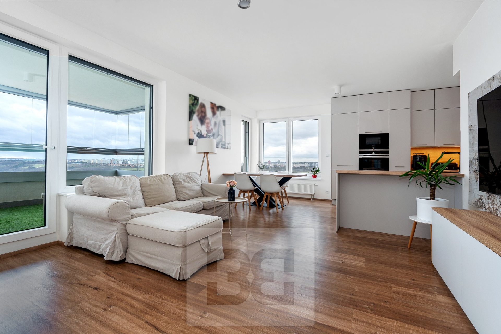We offer for sale a 4+kk apartment with a living area of 119.1 m² located on the 10th floor of the house, at the address Olga Scheinpflugová Square. The apartment consists of an entrance hall with a built-in wardrobe, a bedroom with a spacious dressing room, a bathroom with a shower and a toilet, a children's room, a study, a separate toilet, a storage room, a bathroom with a bathtub dominating the entire apartment, a spacious living room with a kitchenette fully equipped with built-in appliances. The room leads to a glazed balcony of 10.6 m². The orientation of the apartment is north-west. The windows to the west have electric roller shutters. The apartment includes 2 garage parking spaces - the spaces are next to each other and a cellar. The apartment is located in building H of the Barrandov Kaskády residential complex. After the project is completed, it will be in the heart of a residential family district, see the plan in the photos. Fees associated with the use of the apartment 8,955 CZK, of which the repair fund is only 1,415 CZK. This is also an interesting investment for the purpose of subsequent rental, we will be happy to provide you with a guaranteed return of about 3% per year. Don't want to waste time? If you are interested, I will be happy to send you a link to a virtual tour so that you have a complete idea of the offered property (360° tour with the possibility of orientation in the video according to your wishes).