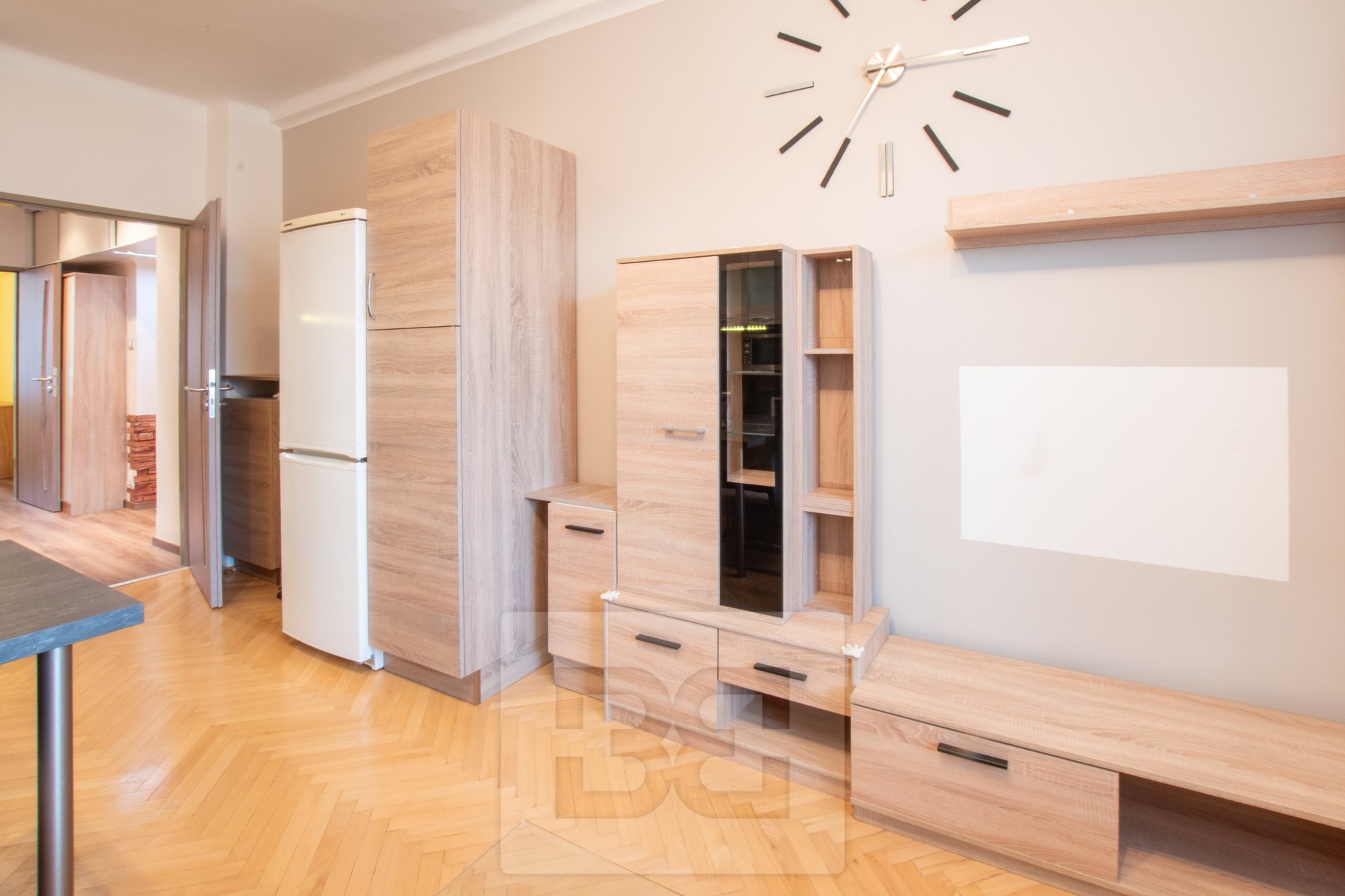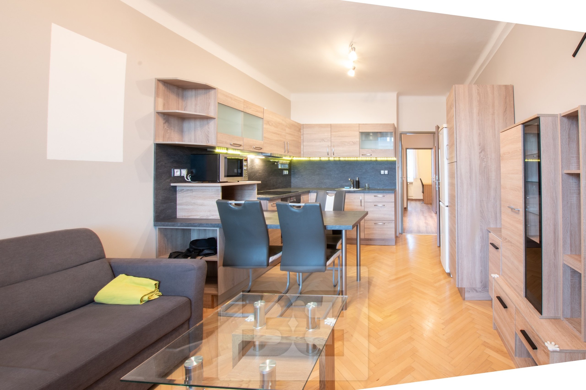 To move in immediately. We offer for rent a beautiful, spacious apartment after reconstruction with 3 + kk and a floor area of 52 m². It is located on the 4th floor of a well-maintained and insulated building situated in a quiet location. The apartment is located in Francouzská třída street. The apartment is bright, with wooden floors in the living room and quality vinyl in the other rooms. The kitchenette is equipped with modern appliances, including a fridge-freezer, hob, oven, extractor hood and microwave. There is also a sofa bed, a dining table and a living room wall. In the apartment there are two separate rooms. One of them does not have a desk, in the other we find a wardrobe and a spacious bed. In the bathroom we find a bathtub. The toilet is located separately. The apartment also includes a spacious pantry, which can serve as a dressing room or a storage room, here we find a storage system of shelves and a washing machine. In the hallway there are additional wardrobes. The location offers all amenities - shops, restaurants, services, post office and pharmacy. There is a tram and bus stop within walking distance. There is also a wide range of leisure activities nearby. Monthly rent - 17900 CZK, deposit for utilities 2800 CZK + electricity, deposit 20700 CZK, commission 17900 CZK + VAT. A great advantage for potential tenants is that the apartment is under the professional management of Bohemian Estates, which manages the apartment for the owner. The tenant is provided with a contact person who immediately solves in