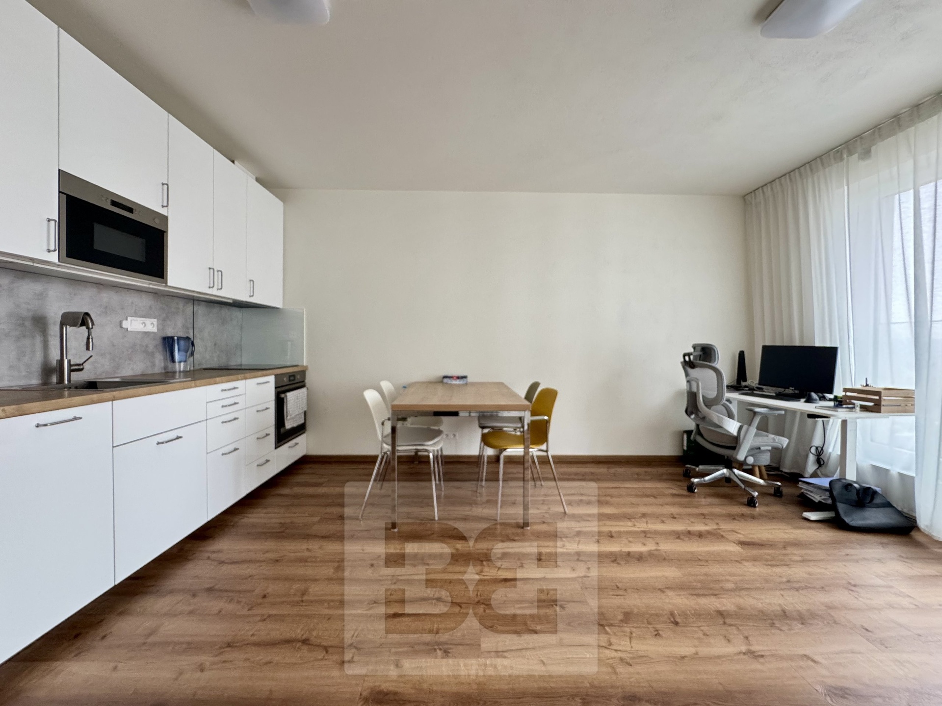 Nabízíme k pronájmu moderní a světlý byt o dispozici 2+kk v oblíbené a dynamicky se rozvíjející čtvrti Sadová, situované nad Kociánkou a Královým Polem. Byt se nachází ve 3. nadzemním podlaží novostavby z roku 12/2019 (5podlažní dům ve vyšším standardu) a je orientován na západ, což zajišťuje příjemné odpolední světlo i klidné bydlení. Dispozice a výměry • Obývací pokoj s kuchyňským koutem: 22 m² • Samostatná ložnice: 12 m² • Předsíň: 4,7 m² • Šatna: 2,6 m² • Koupelna s WC: 4,8 m² • Balkon: 3,4 m² • Sklep: 5,4 m² Celková plocha: 54,9 m² Velkým benefitem je praktická samostatná šatna a dostatek úložných prostor, což z bytu dělá velmi komfortní bydlení i pro pár. Vybavení bytu Byt se pronajímá vybavený: • Kuchyňská linka vč. spotřebičů (lednice, myčka, indukční varná deska, elektrická trouba, mikrovlnná trouba) • Jídelní stůl + 4 židle • Vestavěné skříně (pokoj i šatna) • Předsíňová stěna, botník • Koupelna s WC, bidetem a pračkou • Balkonový stolek + 2 židle • Sklepní prostor se dvěma kovovými regály Samozřejmostí jsou elektrické venkovní žaluzie, které zajišťují komfort a soukromí. Lokalita – Sadová Sadová je moderní rezidenční čtvrť s výbornou dostupností do centra Brna i do Králova Pole. V okolí najdete zeleň, dětská hřiště i kompletní občanskou vybavenost. • MHD (autobus) do 50 m od domu • Dětské hřiště 50 m • Albert cca 200 m • Tesco / Kaufland cca 3 km (6 min autem) • Globus cca 5 km (6 min autem) Lokalita je ideální pro ty, kteří hledají klidnější bydlení s rychlou dostupností města. Nájemné činí 22tis. + zálohové platby 4,9tis. Provize ve výši jednoho nájmu. (jsme plátci DPH) Parkování Součástí nabídky je vnitřní garážové stání (24 m²) za 2.000 Kč / měsíc – pronájem je řešen zvlášť. Podmínky pronájmu • Pouze nekuřáci • Bez domácích mazlíčků ⸻ Byt je vhodný pro jednotlivce či pár hledající moderní bydlení v kvalitní novostavbě s výbornou dostupností a kompletním zázemím. V případě zájmu o prohlídku mě neváhejte kontaktovat. Rád Vám byt osobně představím.